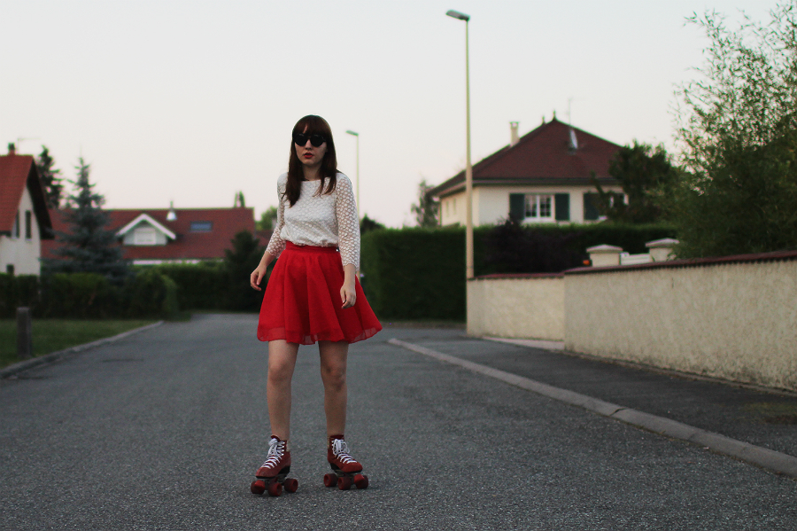i love the skates! and the outfittt :D reminds me of minnie mouse somehow