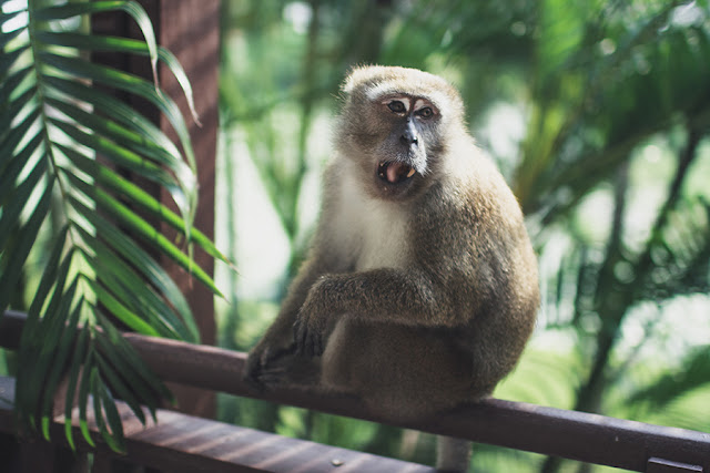 I found an old crate on the beach surrounded by bits of broken glass and images of pirates and fierce sea battles were conjured up in my mind. Luckily I had my every relevant sailor playsuit so I snapped a few photos before the tropical storm enveloped the entire area (I'm talking thunder and lightening, and BIG bucket loads of rain). I can never resist the opportunity to pretend to be a pirate (in a sensible, Disney-esque manner, rather than the real thing) the child in me demands it. Since I seem to be running a bit of an animal companion theme lately, I've included a couple of photos of a crab-eating macaque that sat on my balcony and ate fruit (ironically). Now where's me eyepatch...